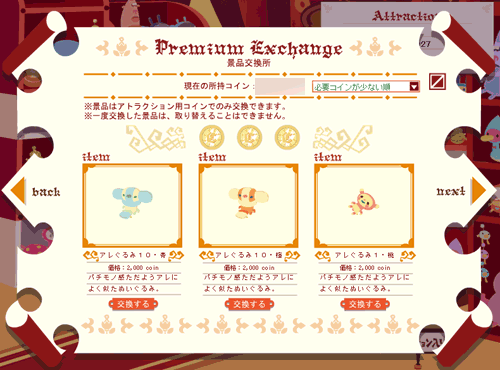 このアトラクションパーク、スロットでコインを貯めて、景品と交換できます。