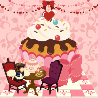 ホワイトデーイベントと同時期くらいに不思議の国のアリスチックなアイテムが登場したのでサイキのお部屋をアリスチックにレイアウトしました。