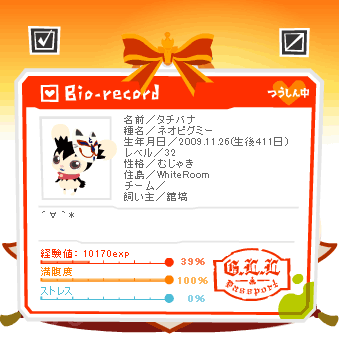 タチバナがハートめっちゃ出してくるんで、なつき度あがったのかなーと思って性格診断いってきたよ~=(・∀・)o
